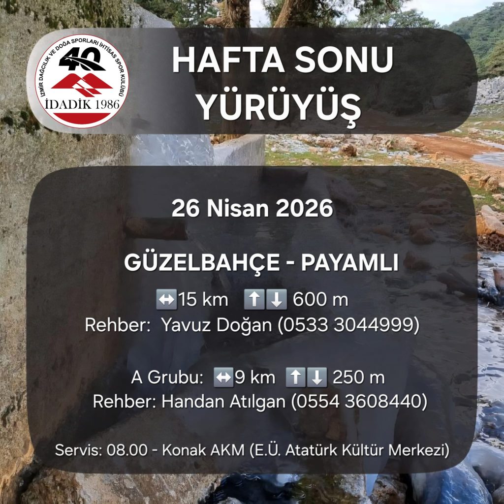 Haftasonu yürüyüşümüz, 26 Nisan 2026 Pazar günü, GÜZELBAHÇE – PAYAMLI rotasında;